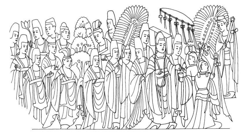 《皇帝礼佛图》摹本 当时已有褒衣博带之风