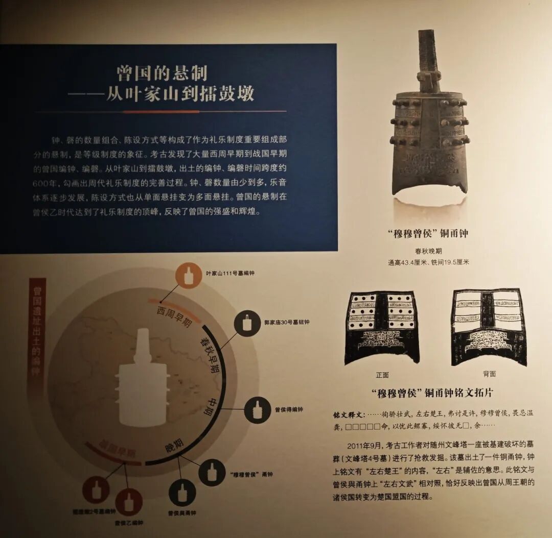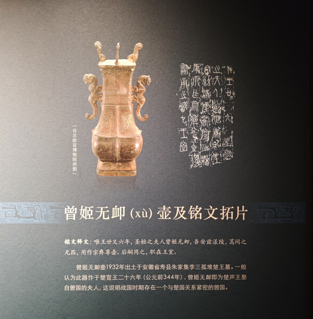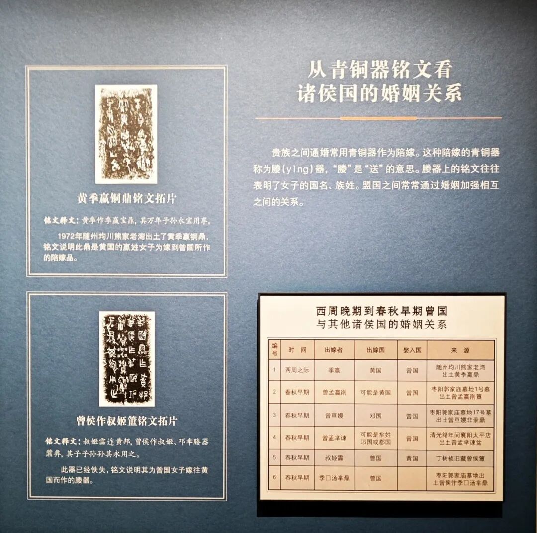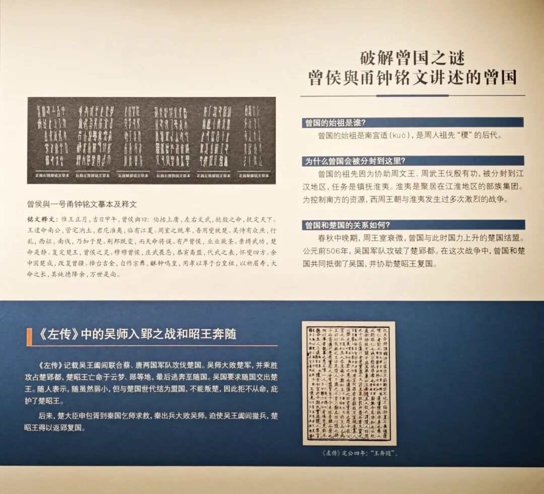 基于这些考古成果,湖北省博物馆常设“曾世家——考古揭秘的曾国”展览,该展位于博物馆南馆二层,揭示曾国从在江汉地区独领风骚到滋养楚国、最后融入楚文化的发展历程。
