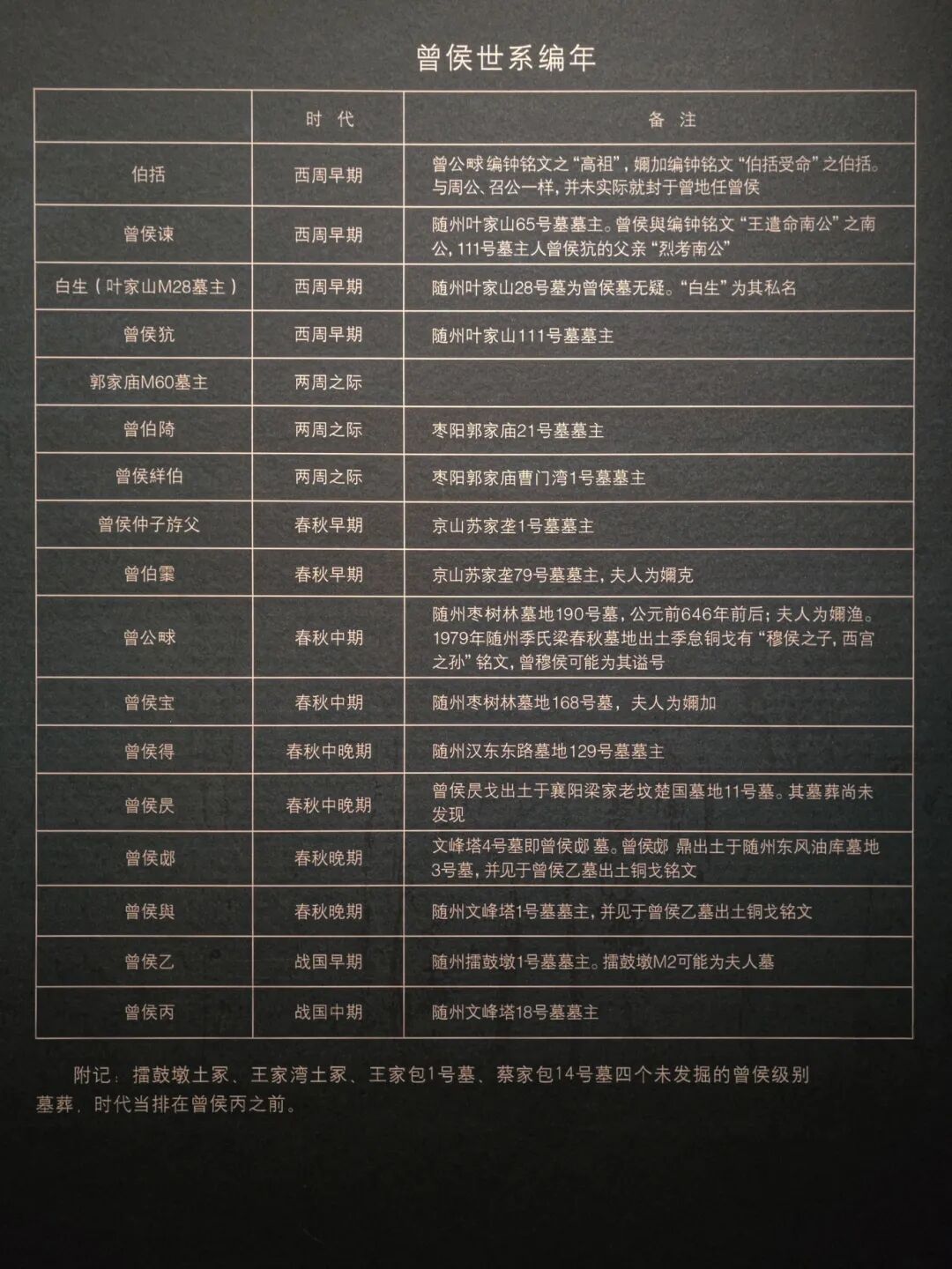 值得注意的是,针对春秋晚期与战国中期的曾国考古发掘一方面揭示了这一时段的曾国文化遗存,另一方面也使曾随之谜逐渐水落石出。