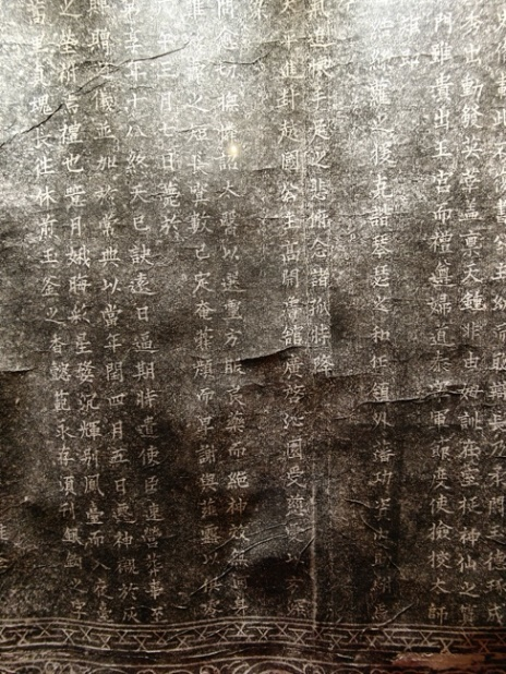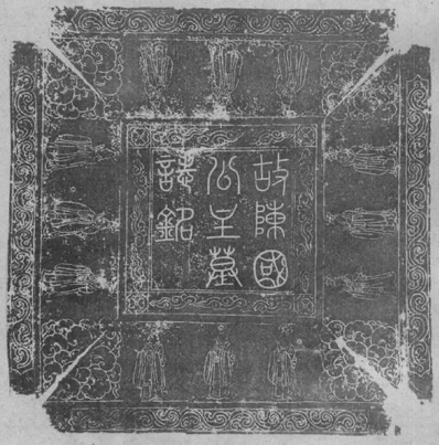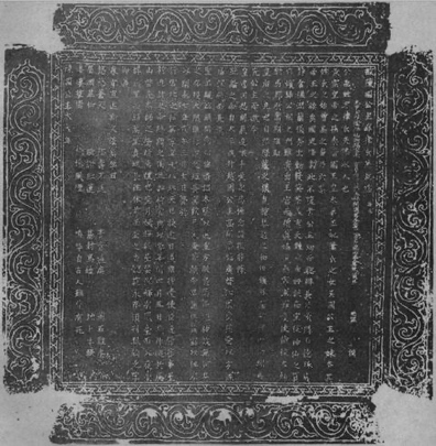 陈国公主墓志拓片,1986 年通辽市奈曼旗陈国公主与驸马合葬墓出土。双栏内框内阴刻篆书“故陈国公主墓志铭”3 行 8 字。志文 513 字,书法工整,刻工细致,字迹清晰,侧边刻卷草纹。