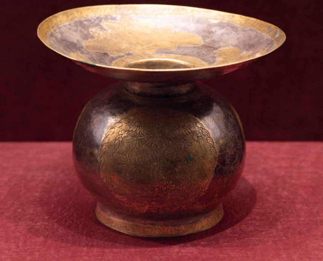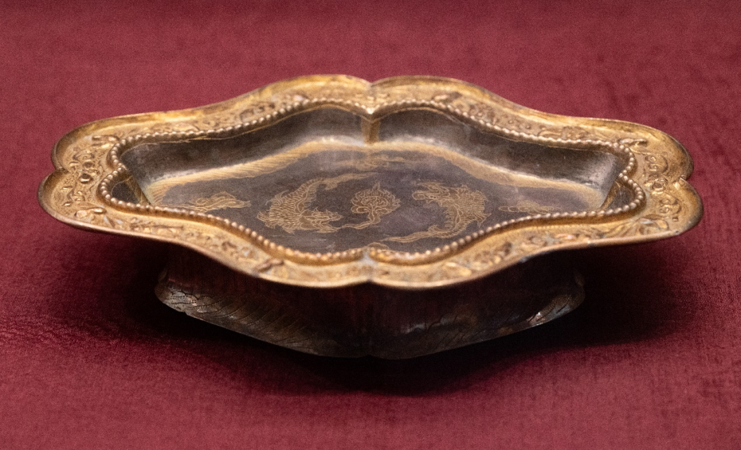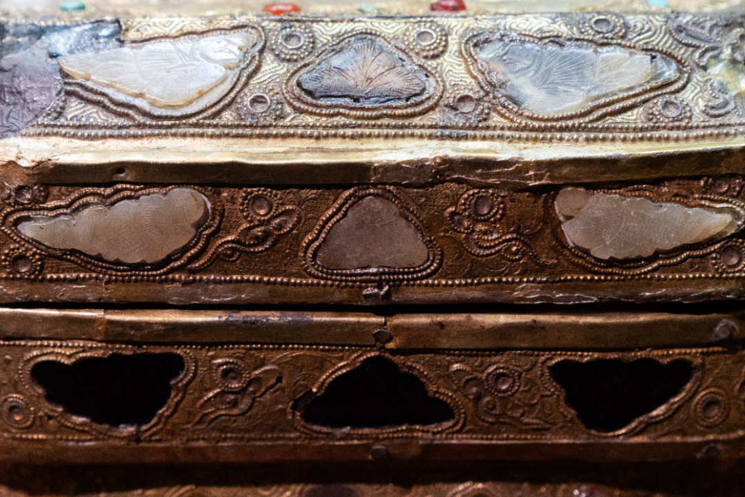 同样,鎏金也是传承已久的工艺,早在春秋战国之交已有鎏金器物。辽代出土的鎏金工艺器物大多以银质或青铜为胚胎主体。鎏金工艺分为通体鎏金和部分鎏金,整体需要经历涂金、高温加热等多道工序,使用多道程序。不同于包金和贴金,鎏金层比贴金更耐用、厚实、滋润。