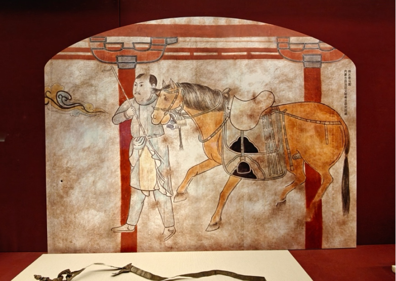 陈国公主墓中随葬有两套马具,包括络头、衔、镳、缰、攀胸也称胸袋、马镫、马鞍、障泥、蹀躞带、银鞧带,这是目前所见最完备的辽代契丹族马具。