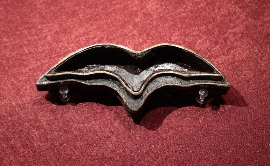 制作这一高翅鎏金银冠的捶揲工艺是辽代金银器锻造常用的一种工艺方法。捶揲一般分为冷锻和热锻,主要利用了金和银质地柔软特性,将冶炼好的金银材料捶打成需要的样式,再将捶揲后的金片修剪成各样式,用于包金、贴金等。