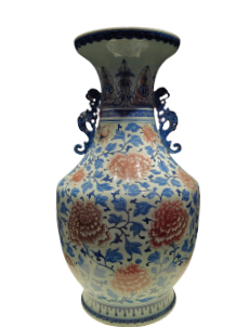 青花釉里红,俗称“青花加紫”,是在青花间用釉里红加绘纹饰的一种瓷器装饰手法。釉里红瓷器传世品中元代器物已是十分少见,青花釉里红的生产则是从元代开始。青花烧制的温度通常是 1250 度,而釉里红烧制的温度通常是 1300 度,因此要想同时烧出色彩纯正的青花釉里红十分困难,所以它是我国古代十分名贵的品种之一。江西景德镇地区元代女子凌氏墓葬中发现的青花釉里红楼阁式人物谷仓铭文清晰,是青花釉里红起源的物证。工艺的繁琐造就了青花釉里红瓷的名贵,而其素雅与艳丽的和谐统一才是其深厚的文化内涵。