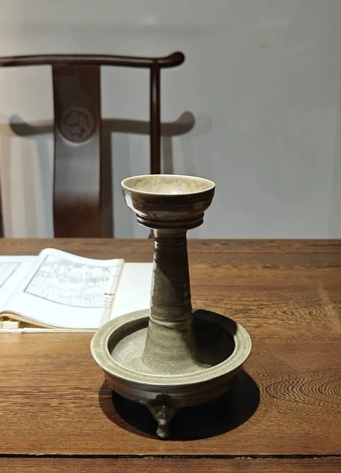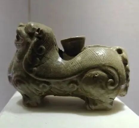 古时常以狮为型,象征勇气与力量,这件狮形烛台作仰首蹲伏状,背部有管,张口露齿,身上鬃毛自然下垂,细节满满。全身施以青釉,匀净无瑕,造型优美,富有情趣,是工艺品与实用品的结合。