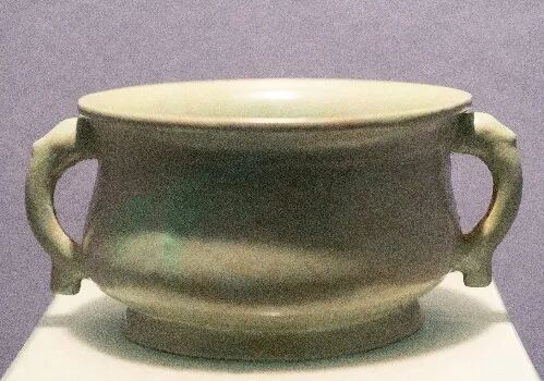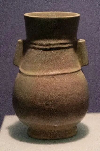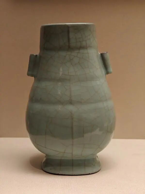 中国国家博物馆收藏的这件南宋时期的官窑青釉贯耳瓶,更能体现南宋官窑的特点,上有开片。