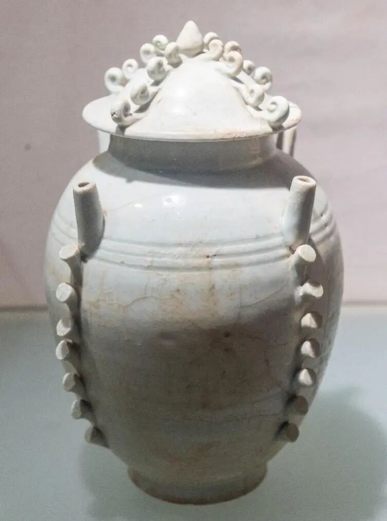 自东汉至隋朝以前,瓷匠便只能利用瓷土中的氧化铁烧出青色瓷器,虽雅致,但总体单调。当釉料中的氧化铁得到控制降低时,便来到了隋唐时期的白瓷出世,与青瓷平分秋色之时。同为氧化铁,多一分成青色,少一分为白色。这一氧化铁变成就了南越窑、婺州窑、长沙窑,北邢窑、定窑等色系分派的局面。