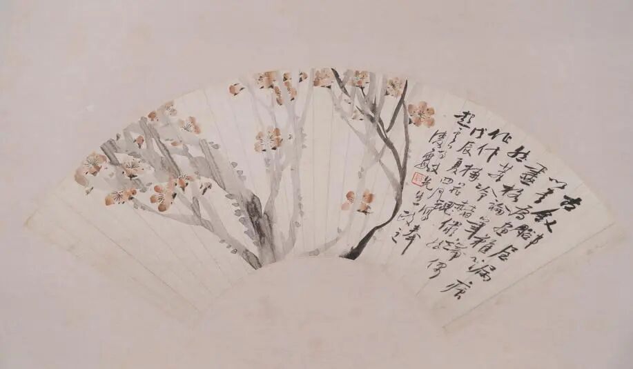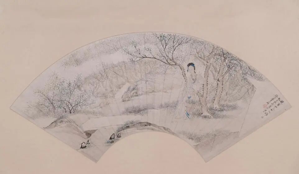 扇面绘画虽为尺幅小品,不及卷轴书画宏大精深,却因其独特的团扇或折扇造型,有着更为浓厚的装饰意趣。由于扇形尺幅及材质的特殊性,使画家必须在有限的空间范围中匠心独运,方能以超绝脱俗的技艺创造出优美动人的无限意境。
