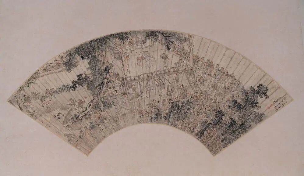 扇子不仅是人们消夏纳凉扇风的用具,更是文人雅士系于腰间、收于袖中、时时把玩的风雅之物。以扇面为载体写字作画,最早出现在执扇上。在折扇上绘画,最迟不晚于宋代。扇面绘画艺术演至明清时期,因其表现手法、意境构图、艺术风格有别于卷轴册页,受到人们备加珍爱。