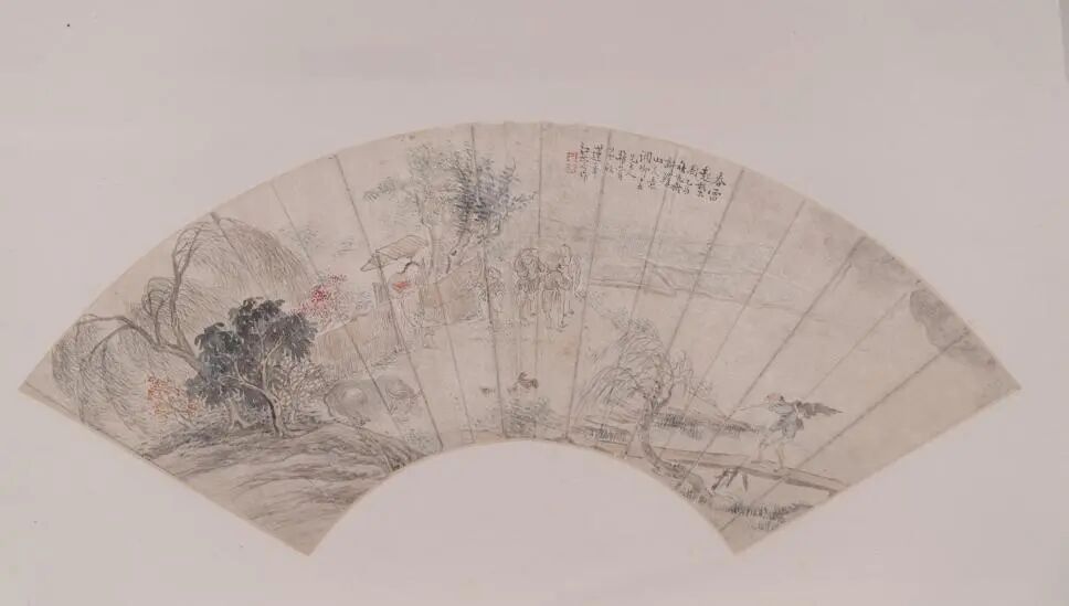 明清以来,扇子人物画突破了前人的墨守成规,表现出一种博综传统,汇融古今的意象和势态。依扇观画,总见文人高士舟溪渔隐,万籁俱寂;又见温婉侍女依窗幽坐,别具风神;还见现实生活与世俗场景。清代扇面人物画将审美意趣引向了世俗娱情,进而开启了雅俗共赏的新风。