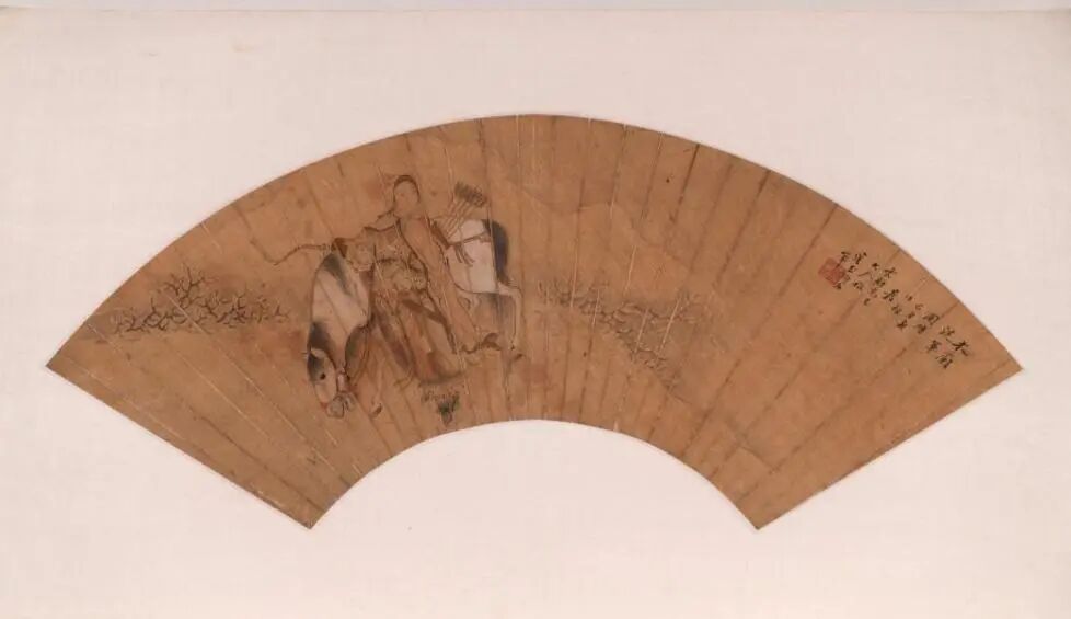扇面题款:“木兰从军图,时己丑春日画为云舫先生大人雅鉴,玉卿再笔。”钤印:“玉卿女史”朱白文方印。蔡玉卿(1612-1694),字润石,漳浦(今属福建省)人,明末著名学者、抗清英雄黄道周之继妻。善书法绘画,能诗文。