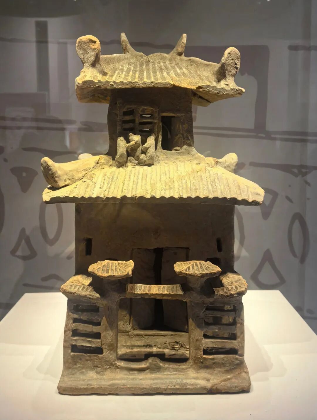不同于古罗马建筑常用的拱顶和梁柱结合的建造体系,汉代建筑采用如搭积木般进行严格有序组合的“模块化”建造方式。如这座东汉时期的陶楼,楼上部分已经缺失,屋顶为四阿式、覆瓦,底层前面有用围墙围起来的院子;第二层楼窗为横棂,以利空气流通,简单明了,朴素清新。在住宅之外,汉代人还注重院内园林景观设计,修建亭台水榭,追求曲水流觞的生活乐趣。