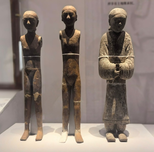 西汉 着衣式彩绘侍女陶俑和塑衣式彩绘侍女陶俑
