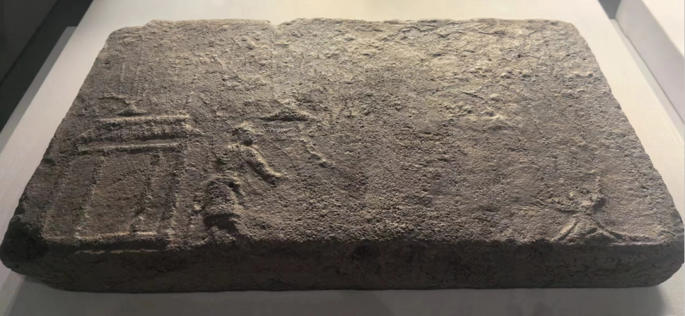 在汉代,女性从事的家务劳动中最主要的一项工作是纺织,在采桑、养蚕、缫丝到制成布匹等过程中起到主导作用。“罗敷喜蚕桑,采桑城南隅。青丝为笼系,桂枝为笼钩”(《陌上桑》),桑蚕是进行织绩的前提,这块东汉时期的采桑画像砖,所描绘的正是女性采桑时的劳动景象。画像中一女子立于门外,弯腰采桑。