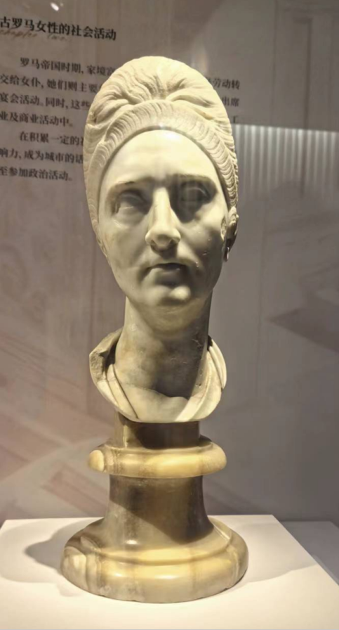 强盛的帝国、繁荣的经济、多元的文化,罗马与汉代女性得以在更广阔的天地展翅翱翔。她们不再囿于家庭琐事,而是积极投身社会生产与生活,展现着别样的风采。上层贵族女性利用自身优势和社会资源,跻身于女性弱势的政治领域,拨动历史的转盘;平民女性则在有限的社会资源下,积极从事生产活动,在织机上的一经一纬随着丝路走向经天纬地,医学、手工业、商业等多个社会经济领域定格永恒的女性背影。此部分主要聚焦于东西方女性在社会生活中的多元角色和贡献。无论是庙堂之上的贵妇,还是江湖之远的凡妇,她们都以各自的方式,为社会的繁荣与进步贡献着力量。
