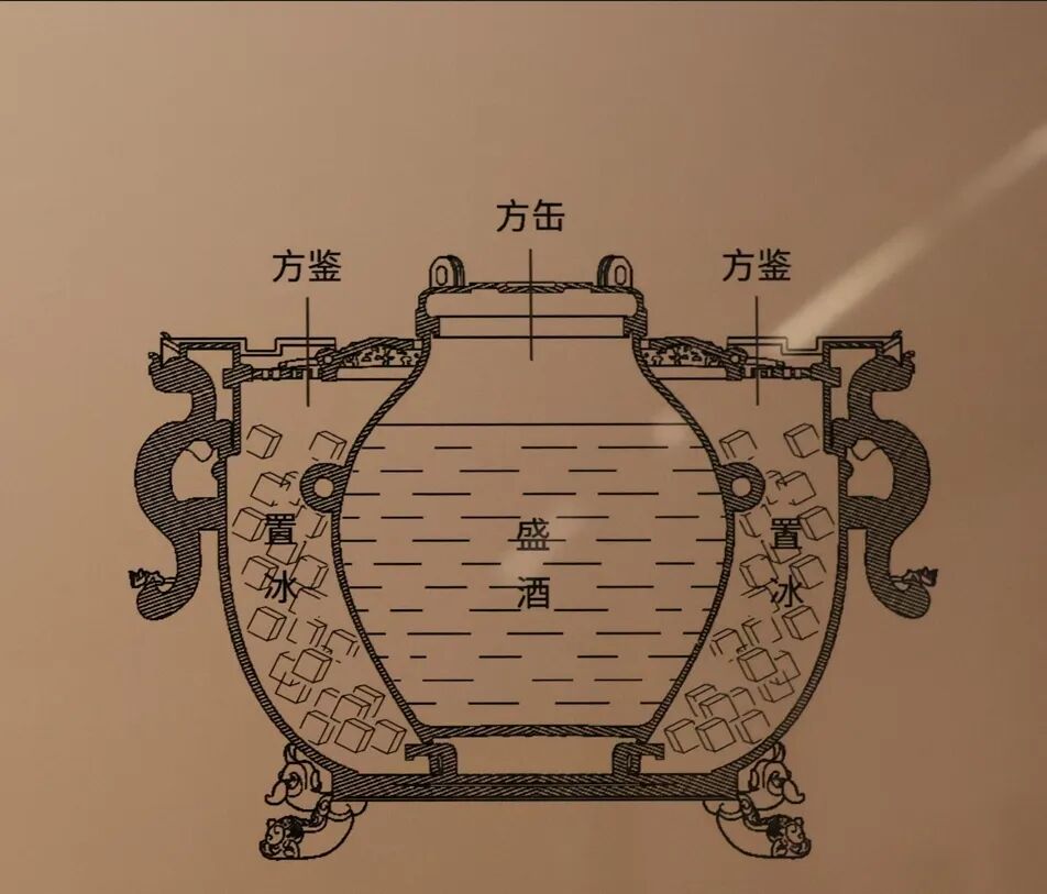 在饮酒的过程中,中国古人也制造出了一些令人叹为观止的“科技产品”。如古人的冰箱——冰鉴,便是其中最具有典型性的代表之一。冰鉴是一种用于冰镇酒浆的酒器,由方鉴和方缶组成。方鉴与方缶间留有较大的空隙,用以放冰。古人曾长期饮用凉酒,使用冰鉴能够制作出冰凉可口的美酒。