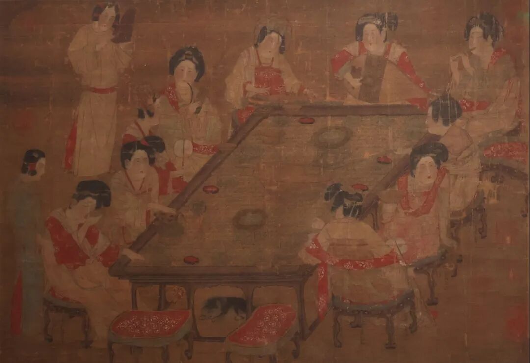 画面中的宫廷仕女一边奏乐,一边品茗,意态悠然惬意。