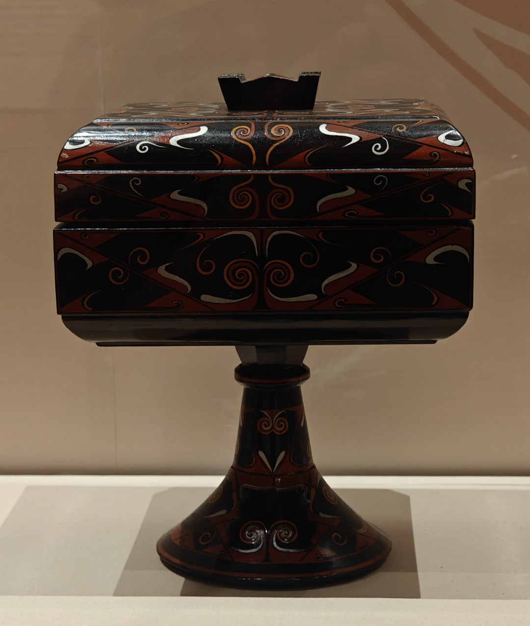 清 朱漆皮胎彩绘葫芦式餐具盒