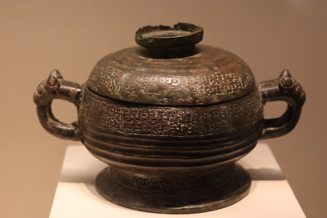 青铜簋是盛食器,一般是用作祭祀的礼器。这件“秦公”青铜簋即为祭器。簋盖内有铭文 54 字、器内有铭文 51 字,记述了秦国的祖先已建都 12 代,作器者要继承前辈事业,永保四方土地。另外器盖还有秦汉时期后刻的铭文各 8 字,记录了此簋在秦汉时为西县官物,曾被当作容器使用。