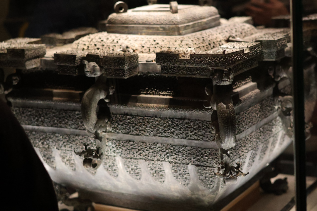 战国铜冰鉴的铸造,集先秦铸造工艺之大成,不仅展现了战国时期的综合生产力水平,也体现了战国时期艺术审美方面的繁缛之风。这套酒器设计巧妙,铸造精细,形体壮伟,在现知商周青铜酒器中尚无可比者 。
