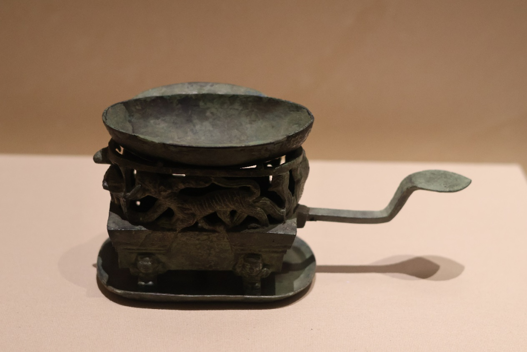 染在古代有调味料的意思,染器是一种古代餐具,用来加热蘸汁,相当于现代的火锅料碗。染器的盛行,与当时人们的饮食习惯有关。汉代人食肉有种特别的烹饪方法“濡”。濡肉分为两步:首先把肉煮熟,在煮时不加调料,类似白煮肉。之后再把肉放入染器内蘸上调料食用。染器相当于现在吃火锅之前调制的料碗。不同于现在料碗里放些蒜泥、香油等,用以冷却刚出锅的肉食,便于大快朵颐,汉代人习惯用较烫的调料,所以须用染炉不断地给调料加温。