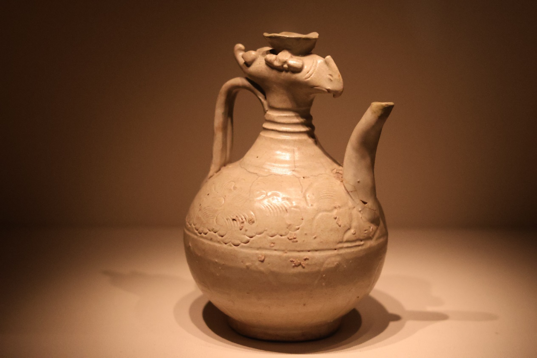 宋 青白釉喇叭口刻菊瓣纹执壶