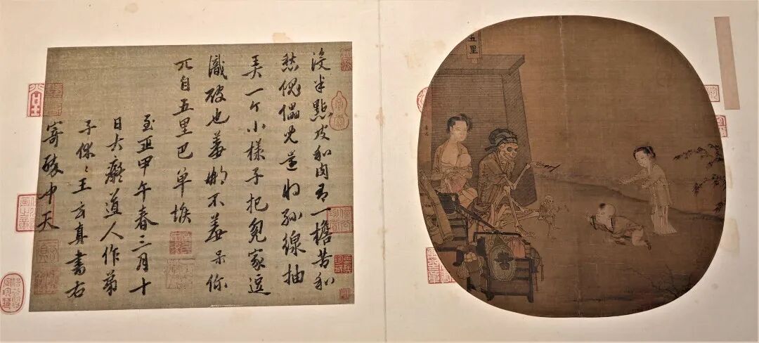 这幅《竹园品古图》为明代大画家、吴门四家之一的仇英所作,表现了江南文人在庭院中品鉴古玩字画、啜饮香茗的精致生活场景。人物、环境、陈设、雅事和谐统一,颇具和合之美。图中竹影山石之间,有仙鹤漫步,小犬嬉戏。花鸟和山水,大围屏围成的空间内,青铜古物罗列。