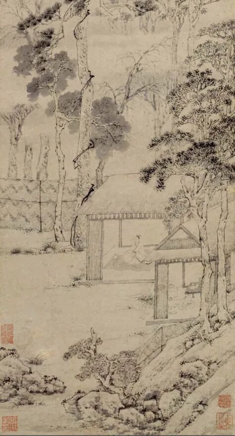 画中正是唐代茶人卢仝在庭院中给水煮茶的情景,虽然所绘为唐代茶事。但从画中树墩上的煮茶风炉与单柄壶来看,表现的却非唐代煎茶法。而是元明流行的煮茶法。煮好的浓茶可用作茶卤,饮用时将茶卤和开水混合,调成浓淡适宜的茶汤。