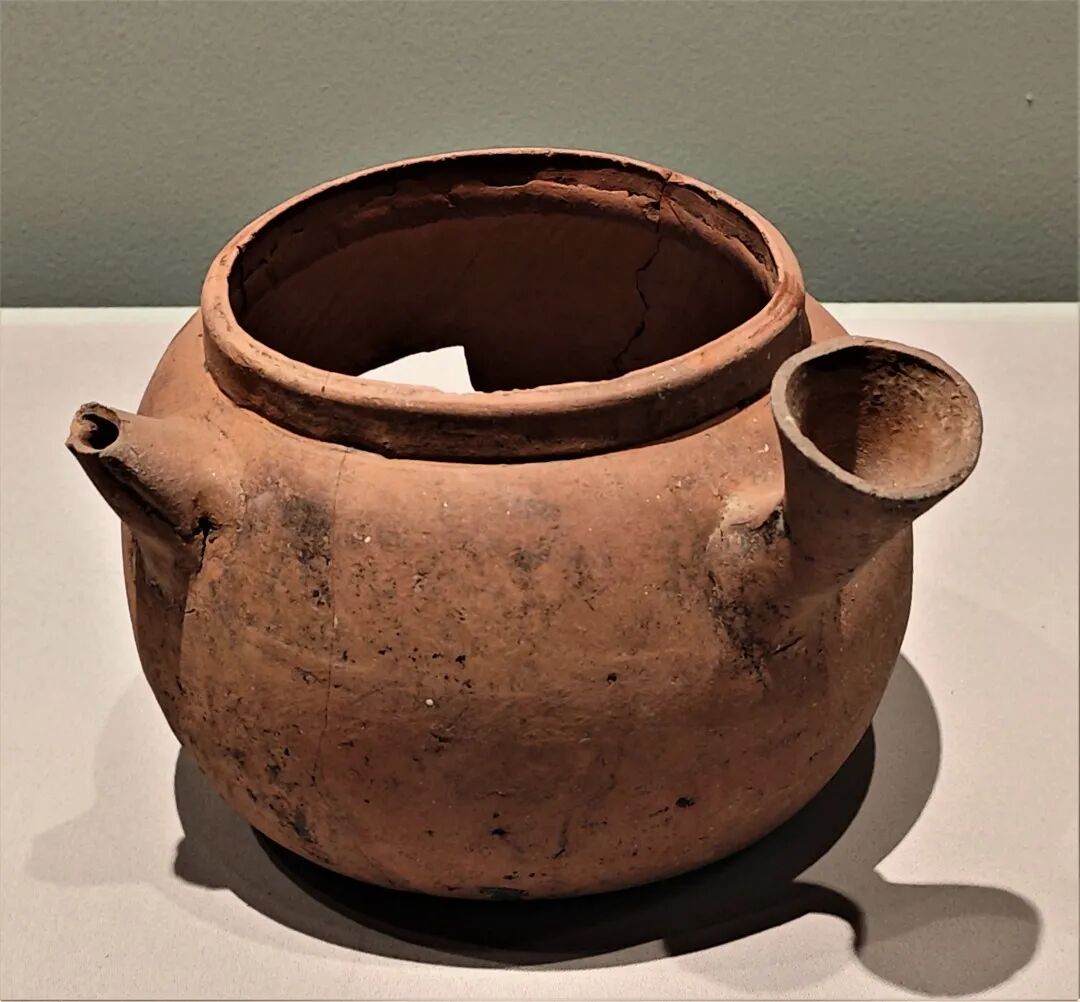 这是在浙江省余姚市河姆渡文化田螺山遗址中发现的人工种植茶树根,通过对树根所在地层年代的碳 14 测定和同时期出土陶盉(与茶相关的水器)的形态特征确定:早在约 6000 年前,中国人就已经开始人工种植茶树。