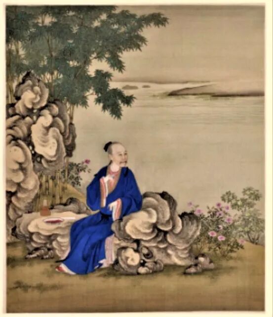 在宫廷画师为乾隆皇帝绘制的《是一是二》图中,弘历作文士打扮。端坐茶舍之内,手持书卷,目视清茶,身边放置着上古玉璧、商周青铜器、青花瓷器、善本书画等古物珍玩。