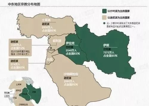 中东的两大大国是沙特阿拉伯和伊朗 ,前者是逊尼派占多数的阿拉伯人口,后者是什叶派占多数的波斯人。这两个国家之间的矛盾已经持续了几个世纪。在现代 ,分裂助长了争夺权力和资源的斗争。