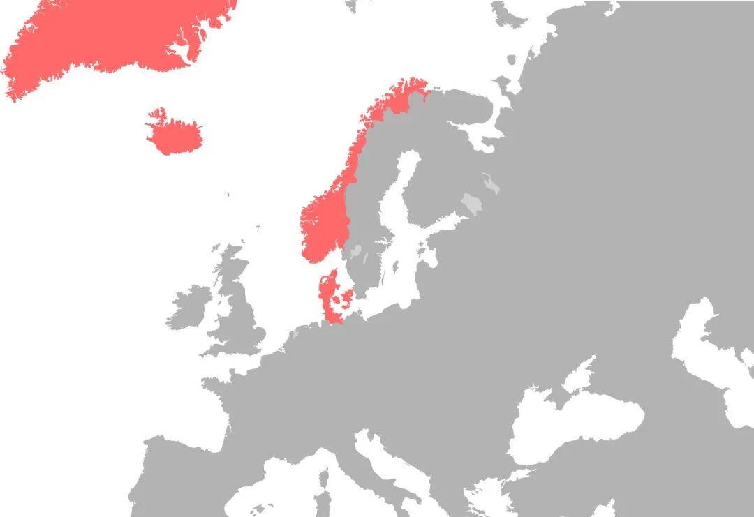 包括丹麦、瑞典与挪威王国在内的北方领土地图