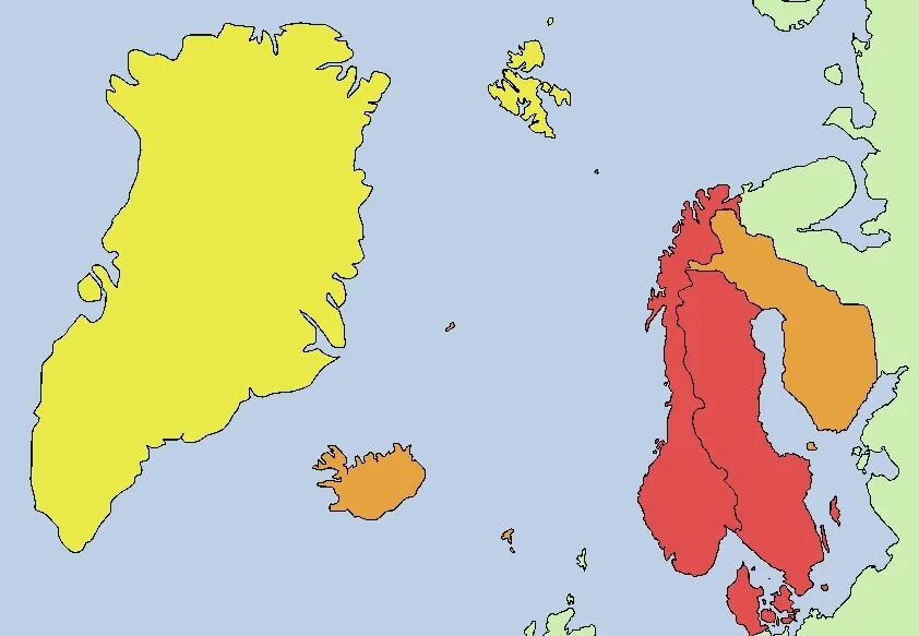 在战后的维也纳会议,丹麦—挪威因为站在拿破仑的一方而被视为战败国,被迫割让挪威本土予瑞典。不过,原本在法理上属于挪威王国的冰岛和格陵兰,却转至丹麦的名下,格陵兰至今仍然是隶属丹麦的自治领。