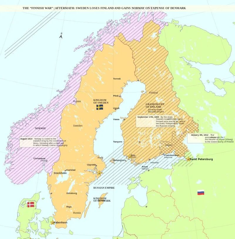 此后几十年,俄罗斯逐渐抢占瑞典治下的芬兰,并于1809年吞并芬兰全境。