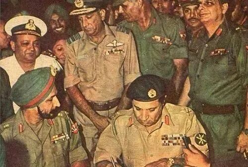 巴基斯坦于是决定先发制人,对印度宣战,这正合印度的意图。十几万大军分兵多路杀进了东巴境内,仅2周的时间,巴军投降,达卡陷落。
