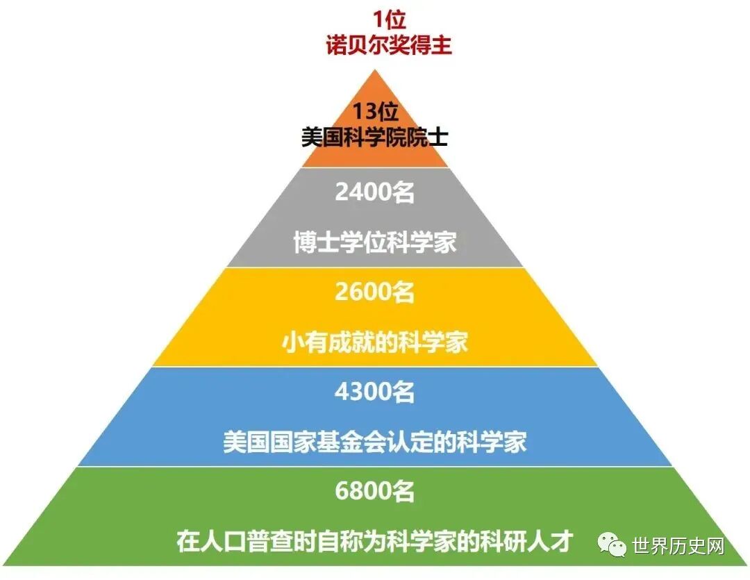 高水平、创新型、研究性科研机构是科技成果萌发的沃土。只有当配备了相当数量的人才和合理的队伍结构,才足以支持一位科学家摘得诺贝尔奖。朱克曼教授研究发现,美国每一位诺贝尔奖得主的背后,对应着13位美国科学院院士、2400名拥有博士学位的科学家,2600名小有成就的科学家、4300名美国国家基金会认定的科学家和6800名在人口普查时自称为科学家的科研人才。