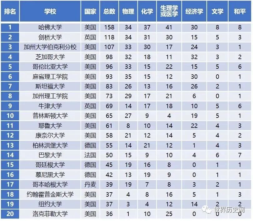 从获奖者所在机构来看,世界一流大学是培养诺贝尔奖人才的主阵地,更是从事基础研究的主战场。美国研究型大学是诺贝尔奖得主的摇篮,在排名前20位诺奖获得者大学分布中,有13所美国常青藤大学,占比达2/3,第一名的哈佛大学更是遥遥领先。