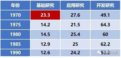 日本研究开发经费按研究性质的分配比例(单位:%)