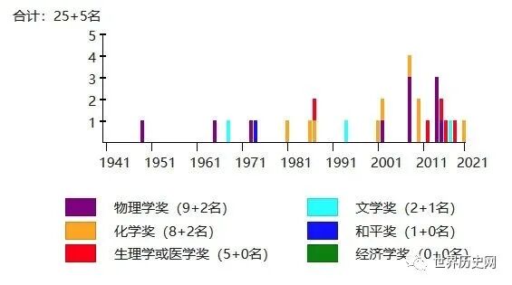 历年日本籍、原籍日本属地诺贝尔奖获得者数据