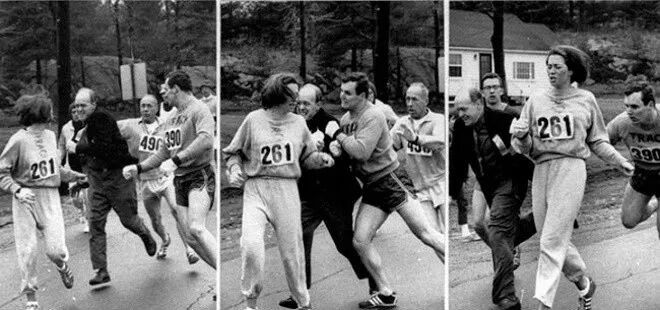 1967年的波士顿马拉松产生了一桩丑闻:一位官员试图把一个名叫Katherine Switzer的女选手赶出赛道。尽管没能成功赶走,当时很少有马拉松比赛那么通情达理。在1960年以来,很少一部分的女性跑完了马拉松,但是没有一场国际锦标赛包含女子马拉松项目。