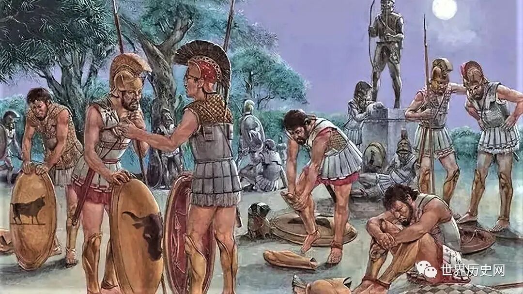 公元前五世纪末,希腊与波斯之间爆发了历史上著名的“希波战争”。这是一场以雅典为核心的希腊城邦反抗波斯侵略的正义战争。马拉松战役是希波战争中一次重要的战役,上面描述的情形正是马拉松战役最后一幕的真实写照。