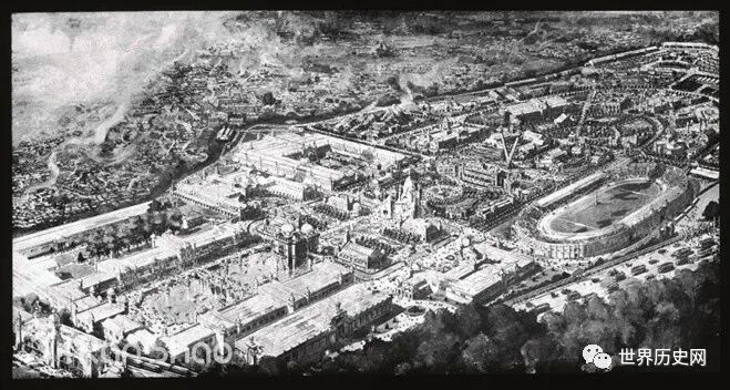 左边是法兰西-不列颠会展的展览馆,右边则是白城体育场