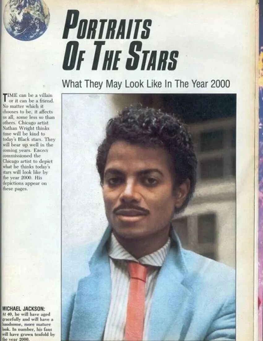 1985年,这本杂志预测了一帮明星在2000年的模样,图片中是他们预测迈克尔-杰克逊未来的样子,现在看来完全错了。