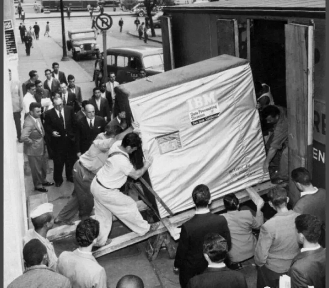 这个巨大的盒子可不是什么大型的电脑,它只是一个存储量仅为5兆字节的硬盘,需要四个人才能挪动它。在今天简直不敢想象这么小的存储量需要如此巨大的尺寸。而且在当时它的租赁价格是每个月3000美元,相当于今天的3万美元。