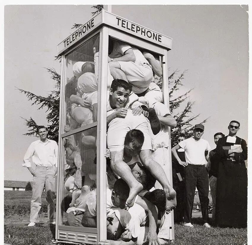 和冰桶挑战赛一样,最初源于南非的一项吉尼斯挑战,看看电话亭里能塞进多少个人?结果这个挑战立刻像热潮一样传到了英国,美国,加拿大,不过最终还是南非的挑战一直保持吉尼斯纪录,这个电话亭里塞进了25个人。