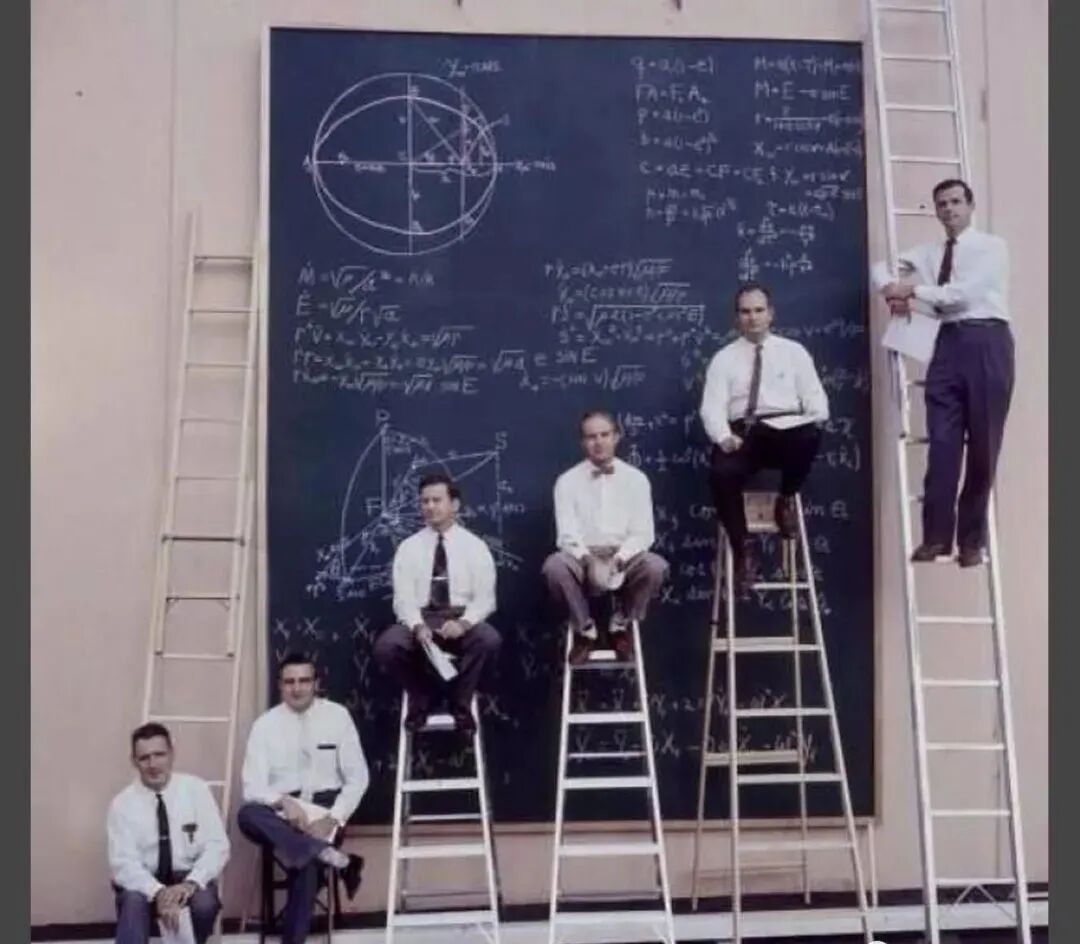 这是发表在1961年杂志上的一张相片,当时的美国和前苏联开展了激烈的太空竞争。你能想象当时的科学家们还在黑板上运算和推演所有围绕航天器轨迹的冗长计算吗?
