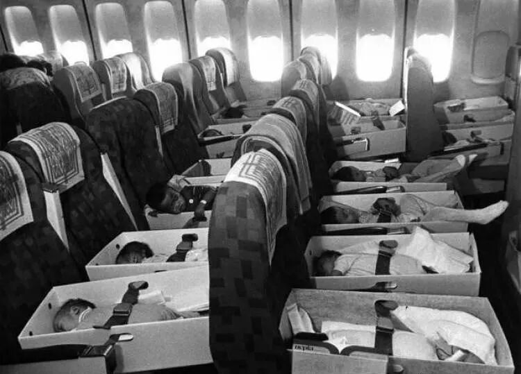 美国发动越南战争期间,有无数的婴儿成为孤儿。由于他们的父母双亡,美国人决定做件仁慈的事情将这些孤儿们空运带回美国,在那里开始新的生活。很少有人知道这件事,照片记录下了这个时刻。