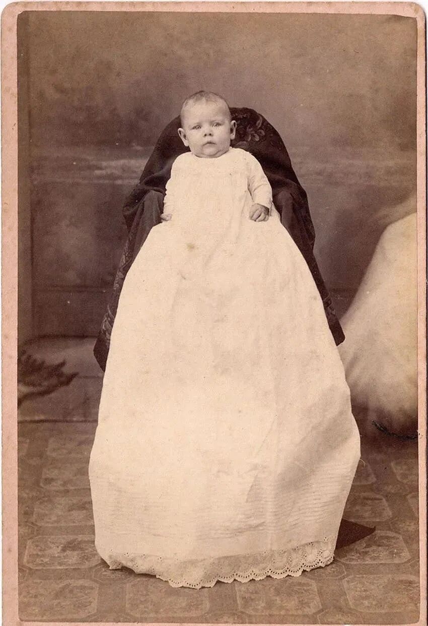 19世纪,摄影开始流行起来。和如今一样,当时的爹妈也热衷于给娃儿留下纪念。不过说起来容易,做起来难。怎么让小婴儿保持不动配合摄影师呢?照片中这个穿着相当长的连衣裙的婴儿,她的妈妈躲在连衣裙下面抱着她,这样就可以保持好姿势啦。这个办法是不是很聪明!