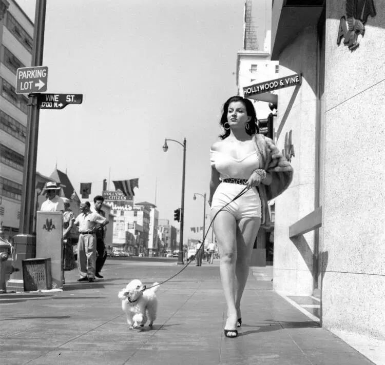 一次偶然的路拍让图片中的美国小姐Myrna Rae Hansen伊利诺伊赢得了德克萨斯小姐的称号。当时她只有17岁,正在好莱坞大道上遛狗。到1953年,她成为了美国每个青少年男孩墙上的一张照片。