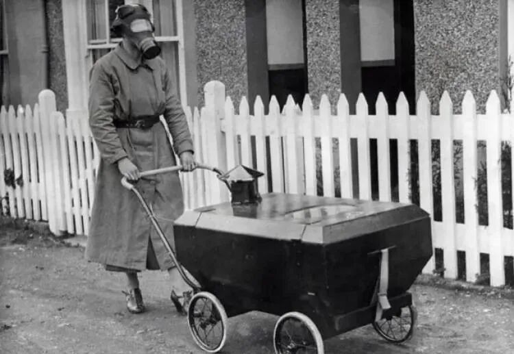 还是在二战时期,当时的英国人惧怕德国纳粹的毒气袭击。因此人们通常会戴着防毒面具进行日常工作。给婴儿戴上防毒面具是不切实际的,所以有人发明了防毒婴儿车。在战争期间可是售卖出了数千辆。